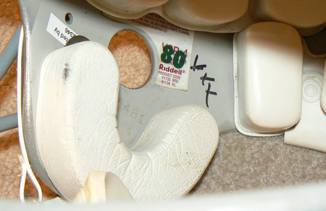 Accompanied by an LOA from Miller, the helmet is a rock-solid gamer with awesome use. It has a perfect black felt-tip signature inscribed to Anthony on the gold exterior and Rice’s famous “80” on red and white dymo tape. The other side of the interior has the manufacturing tagging and his number “80” as well. Also present is his typical padding, chinstrap and mouthguard. Getty photo matches are shown. THIS HELMET HANDS DOWN IS THE BEST JERRY RICE HELMET EVER TO HIT THE MARKET. GUARANTEED YOU CANT FIND A BETTER HELMET, PHOTOMATCHED AND ALL.