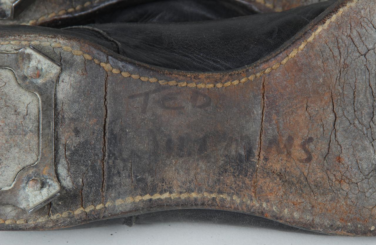 Pictured, we see Williams wearing RIDDELLS. This Riddell model cleat was made early on in Ted Williams career, in 1942. Upon close examination, the tongues on each cleat can safely be identified as the RIDDELLS style that Williams used.