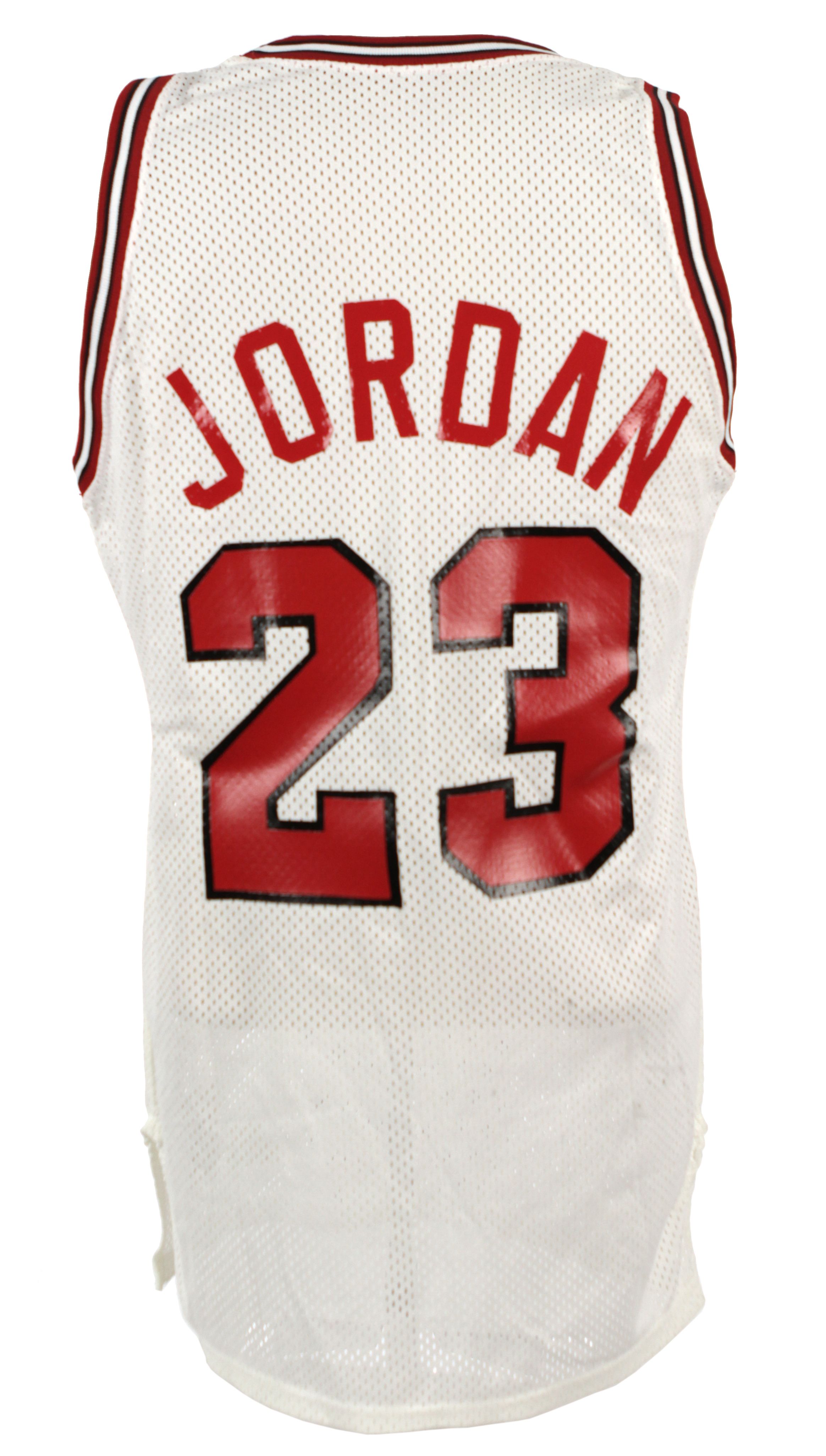 Don’t be afraid of the discolored Jordan game worn jersey’s either. Some of the best game-worn Jordan jersey’s have exhibited some type of discoloration. Game-worn jersey’s show various types of discoloration due to washing. We see quite a few of Jordan game worn jersey’s especially during this late 1980’s-early 1990’s era, that exhibit discoloration. Discolorations on these game-worn jersey’s have been seen in creamy white to soft pink and can be found on some of the best caliber Jordan gamers in the industry.